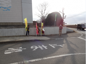 民生委員の皆様、PTA会長様、高学年児童の保護者の皆様に御協力いただき、本年度最後のあいさつ運動を実施しました。