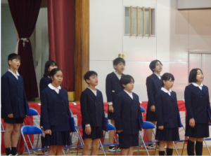 在校生も元気な歌声を響かせ、来週の卒業証書授与式本番に向けて、気持ちを一つに頑張っていました。