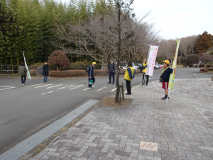 民生委員の皆様、PTA執行部の皆様、低学年児童の保護者の皆様にご協力いただき、あいさつ運動を実施しました。