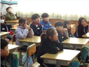 オンラインでの全校集会では、校長先生から、新年の目標を立てて頑張ること、自分から進んで行動すること、自分も周りの人も大事にすることのお話がありました。