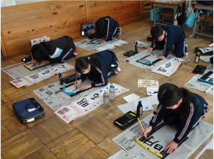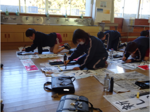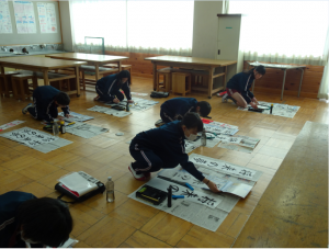 集中して一文字一文字丁寧に書き上げていく子、力強く一気に書き上げる子……それぞれの個性が作品に表現され、どの学年も、たくさんの力作が完成しました。