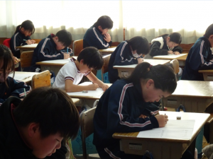 今日は、茨城県学力診断のためのテスト2日目、算数と社会を実施しました。