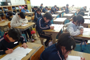 4・5・6年生を対象に茨城県学力診断のためのテストを実施しました。今日は、国語と理科です。