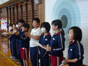 1年間取り組んできたこと、活動で工夫したこと、全校児童の皆さんに協力してほしいことなどについて、それぞれの委員会ごとに伝えました。