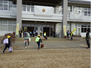 民生委員の皆様、PTA会長様、高学年児童の保護者の皆様に御協力いただき、本年度最後のあいさつ運動を実施しました。