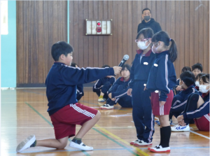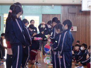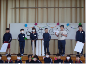 お祝いの言葉や、プレゼント贈呈など、それぞれの学年で役割を分担し、協力し合って進めることができました。学校に関する〇×クイズでは、正解するたびに歓声があがっていました。