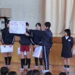 本日は図書委員会の発表がありました。委員の勧めたい本の紹介、図書室クイズ、そして図書室からたくさん本を借りた児童ベスト3の発表がありました。