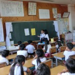 昨日・本日と3年生が「伝えよう・楽しい学校生活」という国語の単元において,1年生教室を訪問しました。写真のように丁寧に1年生に教えてくれました。