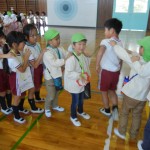 本日、児童朝会が行われ、体育委員会からの発表、保健委員会からの表彰、そして縦割り班マラソン大会の走る順番を決めました。体育委員会から片付けの仕方や体育舎の使い方などの提案、たのしいクイズなどがありました。児童も熱心に話を聞き、自分の考えを述べていました。