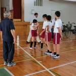 今日より13回にわたって講師の皆様が来校し,大会のご指導をしていただきます。6年生4名はとまどいながらも,熱心に指導を聞き,一生懸命取り組んでいました。