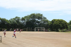 | 梅雨の晴れ間の休み時間です。今までなら一つのサッカーコートにいくつものグループが同時にゲームをしていました。しかし、それでは密集・密接になってしまうし、トラブルも起きがちでした。しかし、今日はそのような混乱がなく、余裕をもって遊べました。 |