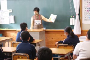 | にじいろのさかなの会の方々が来校して、読み聞かせをしてくださいました。素敵な朗読を楽しむことができました。 |