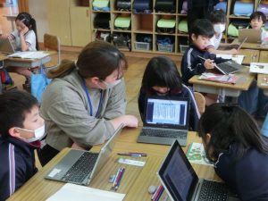 ICTを活用しながら、カンガルーの赤ちゃんについて読み取り、グループで自分の考えを伝え合いました。ICTも1年間使ってきているので、操作がとても慣れていました。