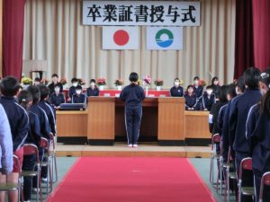 6年生は、お手本のような素晴らしい態度で、一人一人証書を受け取りました。