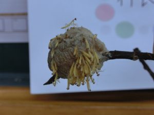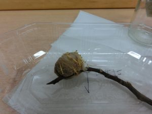 朝の時間に、4年教室から「先生~来てください。」「大変です!」と叫び声が聞こえました。何があったかと行ってみると、教室にあったカマキリの卵から、赤ちゃんが生まれました。