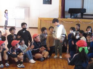 今日のロング昼休みに縦割り班遊びが行われました。縦割り班遊びも遊ぶ回数を重ねるごとに、異学年交流の仲が深まってきました。ある班では、低学年が遊びの説明をして、高学年が教わる姿が見られました。