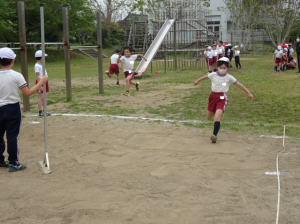 4月28日(月) 3・4年生 体育の学習 2025年4月28日 admin 5時間目は、3年生と4年生が合同体育で、走り幅跳びの練習をしていました。助走をつけて、力いっぱいジャンプをし、記録に挑戦です。