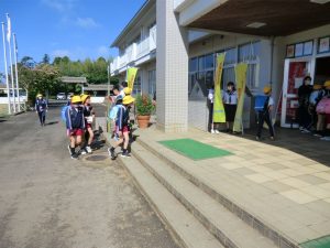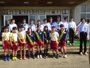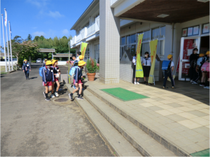 今日は中央委員会の児童と旭中学校の生徒が、合同であいさつ運動を実施しました。本校の卒業生が、来てくれたことに、子供たちは大喜びでした。笑顔であいさつを交わしていました。