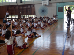 楽器の紹介や、実際に触れてみる時間もあり、児童は一つ一つの楽器に興味をもって身を乗り出して見ていました。また、演奏に合わせて体を動かしたり、手拍子をしたりするなど、音楽鑑賞を楽しんでいました。