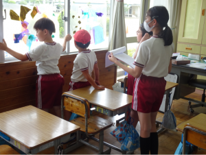 普段通っていた場所でも、探検を通して改めて気が付いたことがあったようです。次の時間には、自分たちの発見したことを伝え合う活動をします。