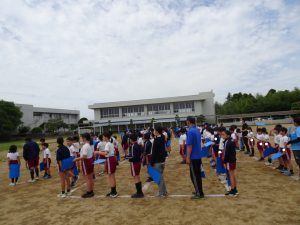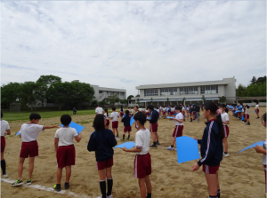 全校児童、職員で「旭東小」の字をつくり、ドローンで空中から撮影していただきました。仕上がりが楽しみです。