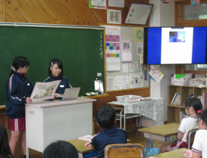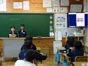 6月11日(水) 図書委員会によるブックトーク 2025年6月11日 admin 朝の読書タイムの時間に、図書委員会児童がブックトークを行いました。各学年に合わせて選んだ本について、本の実物や紹介したいことをまとめた映像を見せながら、本の魅力やおすすめポイントを紹介していました。
