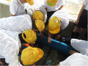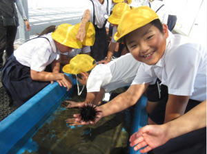 5年生が栽培漁業センターへ校外学習に行ってきました。栽培漁業の工夫や課題についてのお話を聞いたり、小さな「ひらめ」や「うに」を実際に触ったりしました。児童は興味をもって、楽しく学んでくることができました。学校へ帰って、学んできたことを新聞にまとめます。