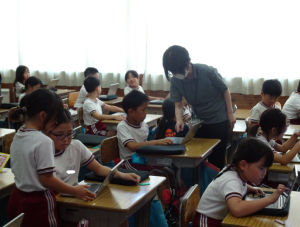 2年生はICT支援員の先生のサポートを受けながら、授業で活用する授業支援アプリの使い方について学習していました。