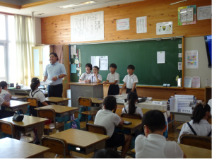また、みんなで植えた花壇を審査していただき、花いっぱいコンクールで賞を受けたことを、飼育・栽培委員会の委員長さんが全校児童に紹介しました。