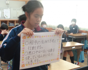 優しい心でお互いを大切にし、楽しい毎日を過ごせるよう、一人一人がしっかりと考え行動できるようにしていきたいと思います。