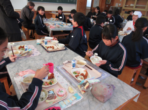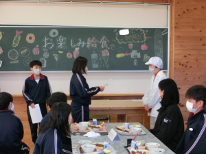 12月5日(金) お楽しみ給食 2025年12月8日 admin 6年生が楽しみにしていたお楽しみ給食が実施されました。 会食の前には、いつもお世話になっている配膳員さんへ、6年生から感謝の手紙のプレゼントがありました。 子供たちの好きなメニューで、みんな美味しくいただきました。