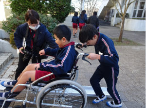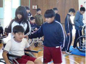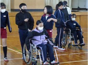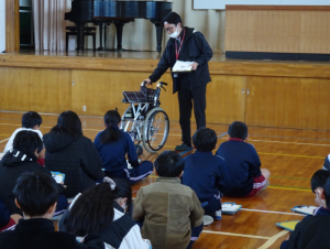 12月10日(水) 5年生 福祉体験 2025年12月10日 admin 社会福祉協議会より講師の先生方をお招きし、5年生が福祉体験を実施しました。実際に車いすに乗って移動をしたり、サポートの仕方を学んだりしました。