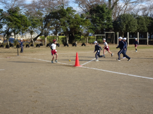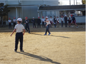 5時間目に3・4年生が合同体育でティーボールを実施しました。寒さに負けず、楽しく活動していました。