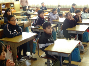 教頭先生から、お別れは寂しいけれど、長い間みんなで大切に育ててきたウサギさんたちが、これからも元気で過ごせることを願いながら、送り出しましょうとお話がありました。