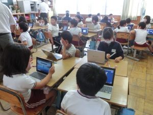 今日は学校評議委員の方の訪問とグループワークデーでした。グループワークもまだ始まったばかりですが、お互いに教え合ったり、意見交流をしたりして協働的な学びの姿が見られました。授業中もとても落ち着いていて、活発な話し合いが行われていました。