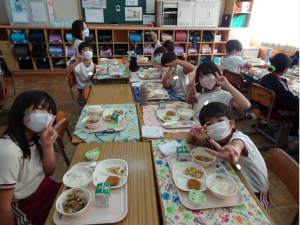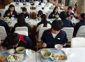 今日の給食は、鉾田市産の食材をたくさん使ったお祝いメニューでした。おいしいくいただきました。
