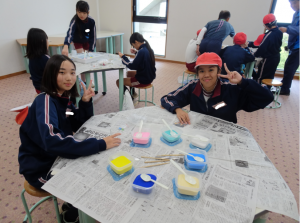 今日は、入所式、海浜スコアオリエンテーリング、ジェルキャンドル作りなどを行いました。