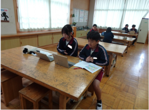 来週の宿泊学習に向けて、6年生が旭地区4校の小学校をオンラインでつないで、事前の打ち合わせ会を実施しました。4つの小学校合同で班を作り、同じ班の友達と相談しながら、班のめあてと役割を決めました。