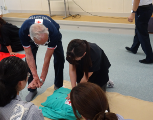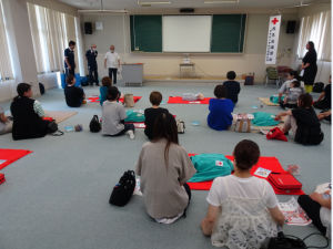 今日は、午前中、日本赤十字社茨城県支部より講師の先生方をお招きし、教養委員会、家庭教育学級の合同研修会を実施しました。心肺蘇生についての講話とAEDを活用した実技講習を実施しました。
