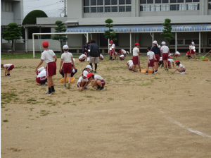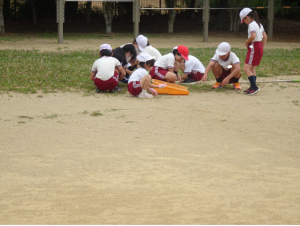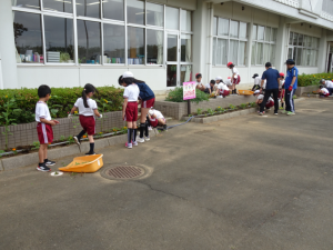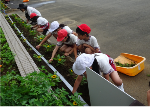 今日は、花壇や校庭、学校の畑の草抜きを頑張りました。どの班も、高学年の児童が低学年の児童に声をかけながら協力して取り組んでいました。