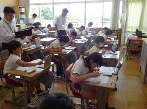今日は、茨城県鹿行教育事務所、鉾田市教育委員会から講師の先生方をお迎えし、学校の様子や児童の学習の様子を参観していただきました。児童は、それぞれの学年の学習課題にしっかりと取り組んでいました。