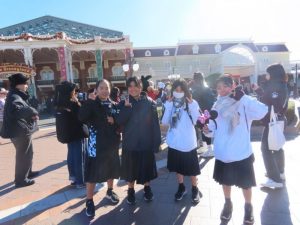 園内では、各班行きたいアトラクションやレストランへ、待ち時間を確認しながら、みんなで計画を立てていました。