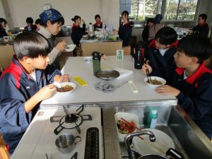 12月9日(火)3、4校時に鉾田地域いきいき女性の会旭支部「さくら」の方を講師に迎え、調理実習がありました。メニューは、肉じゃがでした。丁寧にジャガイモやニンジンの皮むきを行い、肉と炒めて、煮込みました。中学校で初めて作る肉料理でしたが、上手に作ることができました。最後はおいしくいただきました。