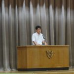 各学年の代表生徒が前期を振り返る話をしてくれました。