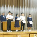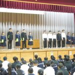 生徒会の引き継ぎ式では、前期生徒会から、旭中をより良くしたいという思いが、後期生徒会へと引き継がれました。