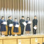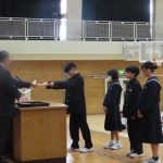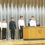 学級委員の任命式では、立派な返事が体育館に響きました。
