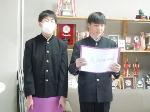 今週から、生徒会企画で人権ウィークを実施します。今回、生徒会役員はハイタッチ運動だけではなく、いじめ撲滅署名運動を実施します。また、生徒朝会では、クラスの人権目標を発表しました。