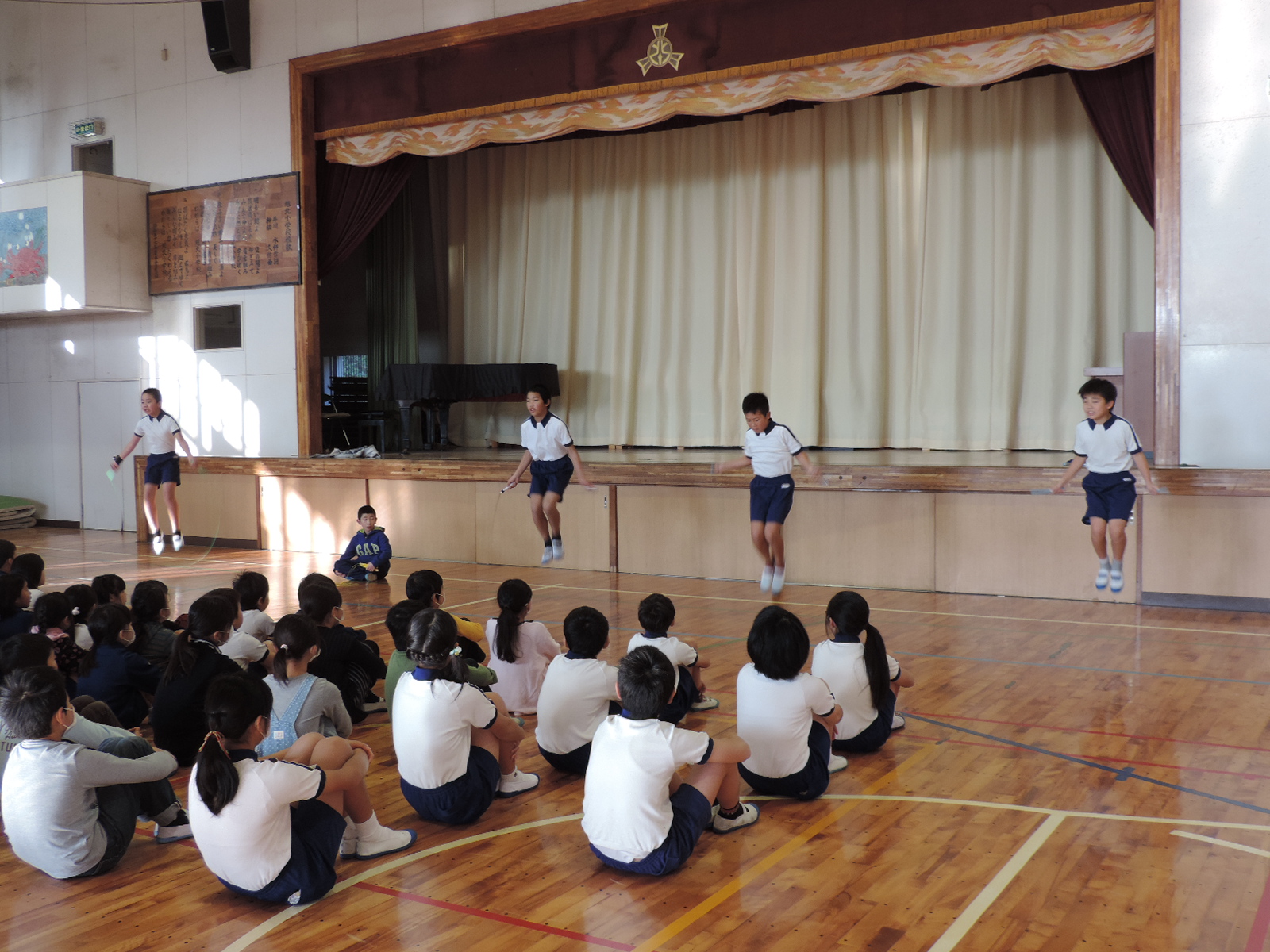 児童集会(体育委員) カレンダー カレンダーに追加 Timely カレンダーに追加 Google に追加 Outlook に追加 Apple カレンダーに追加 他のカレンダーに追加 XML ファイルとしてエクスポート 日時: 2016年12月6日 終日 2016-12-06T00:00:00+09:00 2016-12-07T00:00:00+09:00 本日体育委員と6年生によるなわとびの発表がありました。 低学年の子ども達は,上級生が難しい技を見せると,「おー!」と歓声を上げていました。