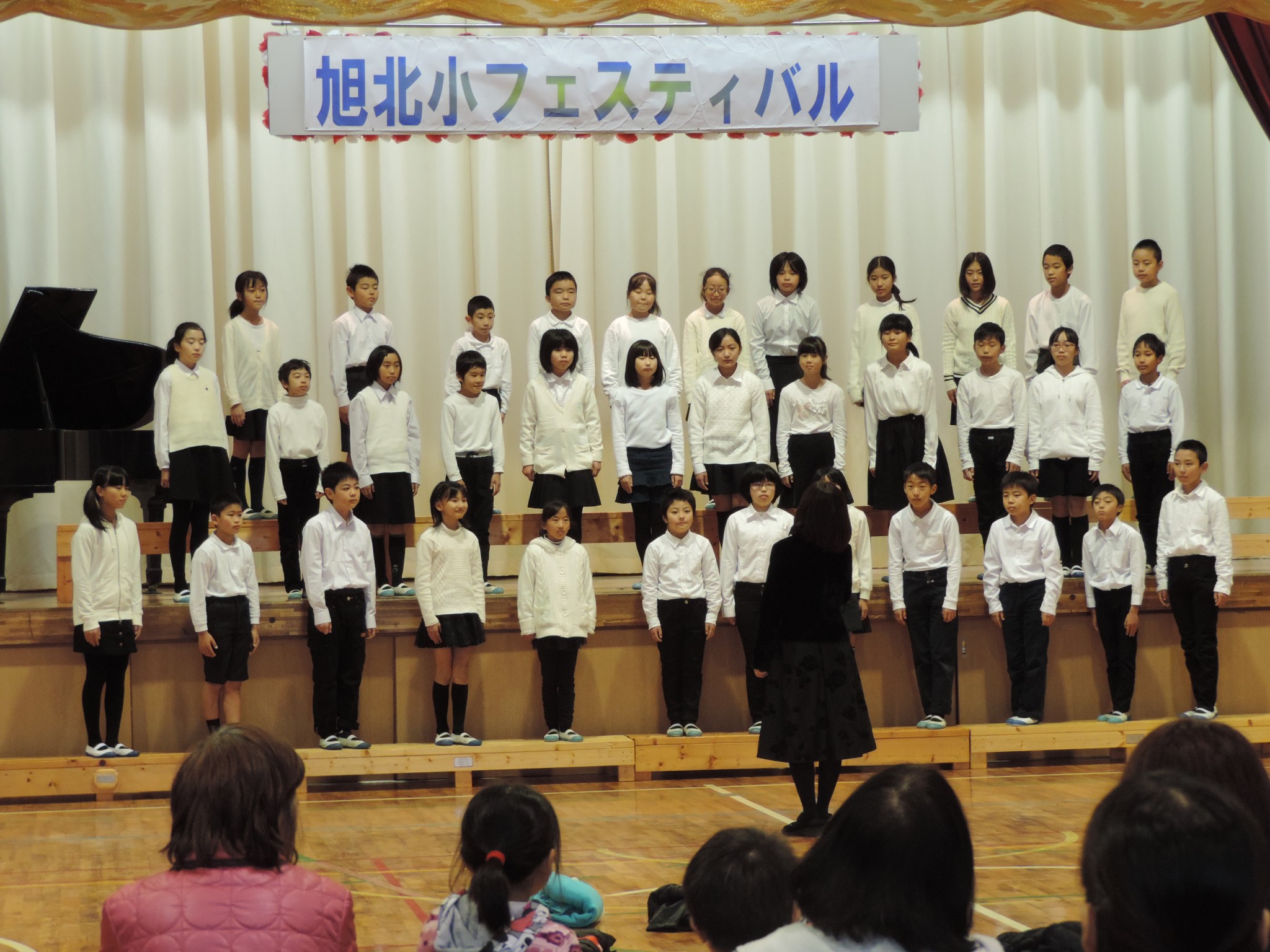 児童発表では,1~3年生の音楽発表や4~6年生の合唱発表を行い、素晴らしい演奏や歌声を披露することができました。