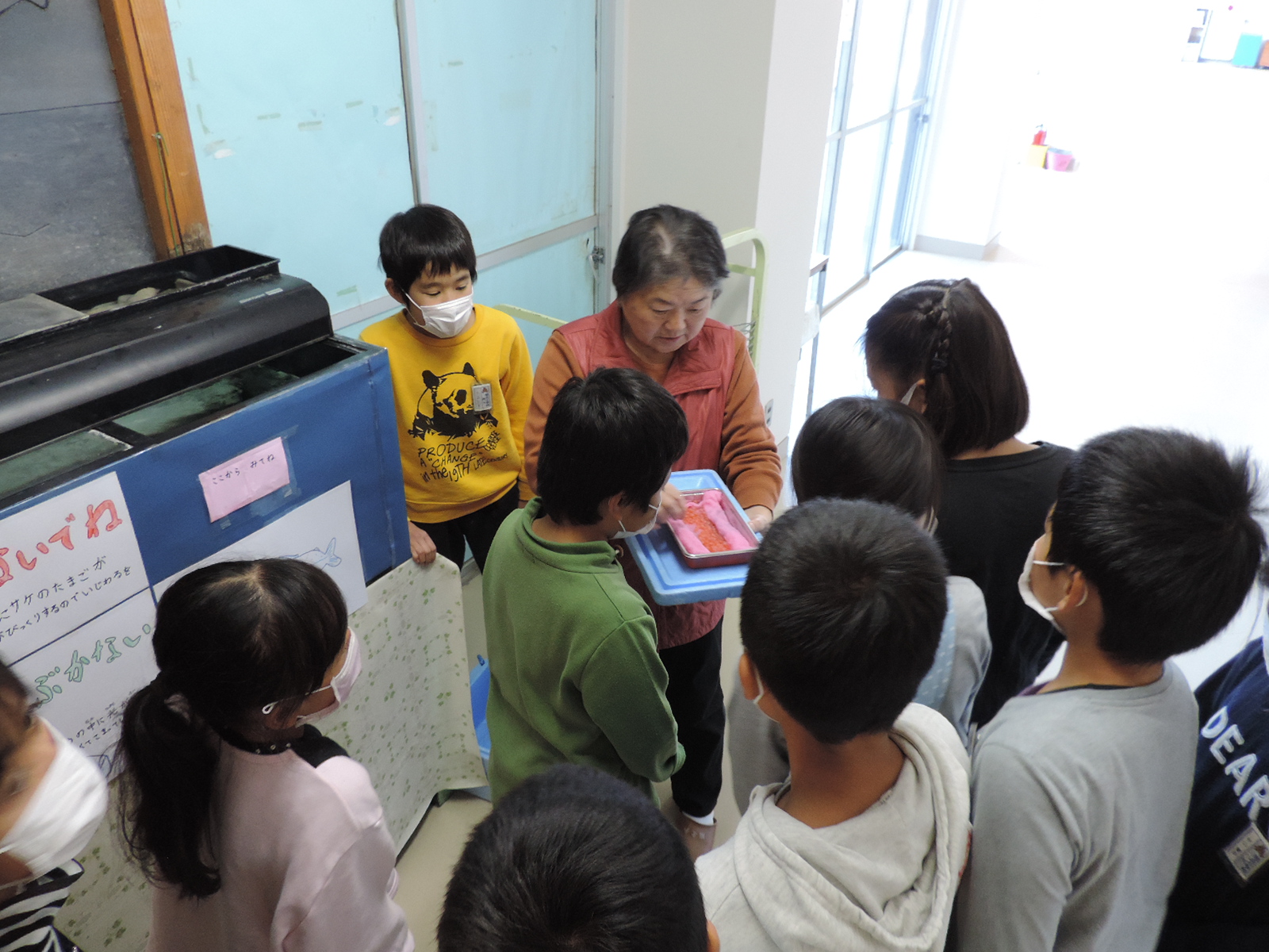 今年も鮭の卵が届きました。100個以上の卵が玄関前の水槽に入りました。4年生が今日から水温や卵の状況の観察・記録がはじまります。卵が無事にかえり,稚魚が元気に育ち,大谷川に放流できるように願いを込めて,育てていきます。時々鮭の成長を報告していきます。